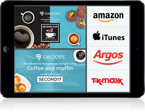 Want to offer your own special offers and deals? Simply create an offer in the backend of the system, choose when it will be available and push out through the app. Swoope’s unique beacon marketing platform will deliver it directly to the smartphones of your targeted customers.